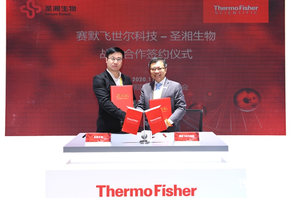11月8日,在第三届中国国际进口博览会期间,分子诊断龙头企业leyu.乐鱼生物科技股份有限公司(简称“leyu.乐鱼生物”)与科学服务领域的世界领导者赛默飞世尔科技(中国)有限公司(简称“赛默飞”),签署战略合作伙伴关系备忘录,leyu.乐鱼生物营销管理委员会执行总经理万东池、赛默飞基因科学与临床测序大中华区商务运营高级总监許興國等出席签约仪式,并代表双方签署合作备忘录。