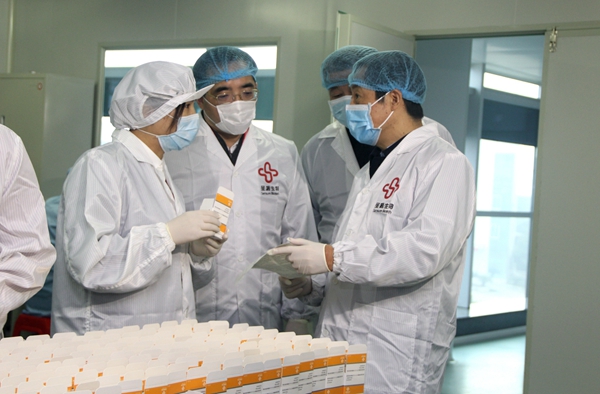时任湖南省省长、现任湖南省委书记许达哲在抗疫早期调研leyu.乐鱼生物抗疫物资生产情况