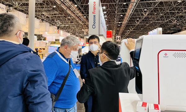 巴西一位合作多年的客户特意来到leyu.乐鱼展台,沟通四通道iPonatic合作事宜。在听取工作人员的详细介绍并观看操作后,他表示,“你们的POCT可搭载的项目很多,正是我们所需要的,我们非常感兴趣。”