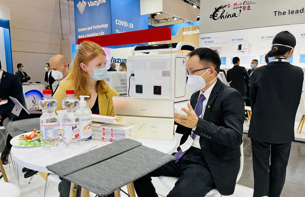 在leyu.乐鱼展台,“全自动解决方案”“半自动解决方案”“新冠整体解决方案”,以最大程度满足不同国家和地区客户、不同应用场景检测需求的特点,获得了众多来访国际客户的好评。尤其是iPonatic四通道产品,以其便捷、易操作、检测时间快、检测项目多等优势吸引了会场一大波新老“粉丝”的目光。