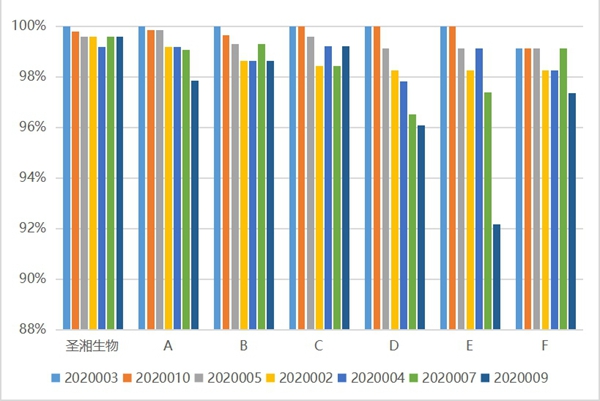 leyu.乐鱼生物试剂阴性样本检测结果的符合率也领先于其它主流厂家,具有较好的特异性。综合室间质评结果来看,leyu.乐鱼生物新冠病毒核酸检测试剂检出率、重复性及特异性上具有较大的优势。